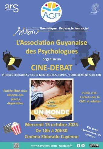 À l'occasion des Semaines d'information sur la santé mentale, l'Association Guyanaise des Psychologues vous propose un ciné-débat autour du film UN MONDE.