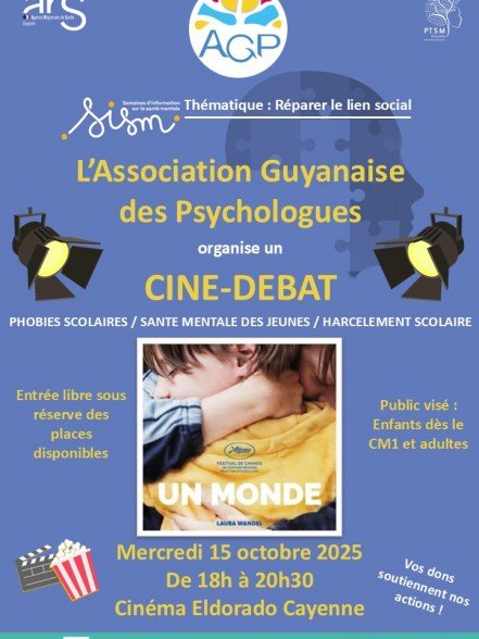 À l'occasion des Semaines d'information sur la santé mentale, l'Association Guyanaise des Psychologues vous propose un ciné-débat autour du film UN MONDE.